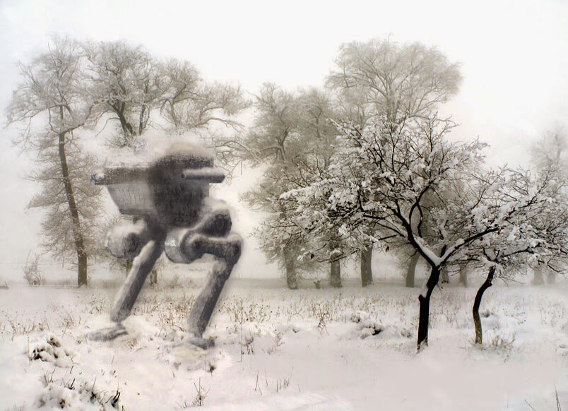 Following a trail of compacted snow, Trotsky found the machine and its operator half a mile away. Struggling with the mecha’s controls from a pilot seat twenty feet off the ground, Lenin guided the robot’s sawing arm back and forth across the base of a thick balsam poplar. “Comrade Lenin,” Trotsky yelled. It took a few more shouts like this for the Soviet leader to hear him over the sound of the machine. But finally he waved in acknowledgement. Lenin lowered his chair to the ground and shut down the mecha.